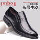 金猴男士正装皮鞋男青年商务套脚圆头牛皮男鞋黑色爸爸皮鞋男春秋