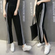 新款韩版夏季2017条纹开叉九分显瘦长裤学生宽松阔腿裤休闲裤女