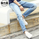 翰代维秋冬季韩版男士牛仔裤 修身显瘦小脚日系青少年长裤子男装