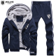 加绒加厚男士运动服套装春秋冬连帽保暖运动卫衣中老年运动服外套