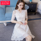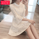 蕾丝连衣裙2017春装新款女装韩版立领喇叭袖白色小香风连衣裙女夏