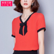 雪纺衫短袖女夏2016新款韩范大码V领蝴蝶结衬衫气质显瘦雪纺上衣