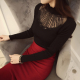 春纯秋冬新款蕾丝拼接荷叶领网纱镶钻长袖打底针织衫套头毛衣女装