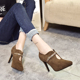 16欧美秋冬新款尖头高跟短靴细跟时尚短筒女靴性感绒面高跟马丁靴