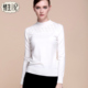 椿生纪半高领毛衣轻薄款修身打底羊毛衫女钩花套头长袖白色针织衫