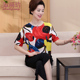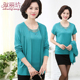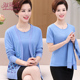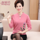 中年女装春秋装V领上衣宽松长袖中老年妈妈装春季短款针织打底衫