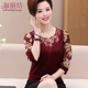 中年妈妈装秋装蕾丝针织衫长袖40-50-60岁中老年女装大码t恤上衣
