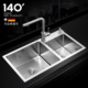 阿萨斯多功能一体成型进口304加厚不锈钢水槽套餐双槽厨房洗菜盆