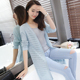 防晒开衫女夏季空调衫披肩外套中长款 镂空针织衫薄外搭v领上衣