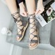 2017新款凉鞋女低跟平底鞋学院时尚复古罗马鞋绑带休闲百搭凉鞋