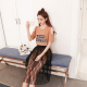 2017新款一片式系带高腰印花雪纺裹裙开叉包臀半身裙