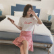 夏季新款 韩版短袖t恤中长款半身裙裙套装女不规则碎花半身裙两件