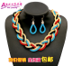 欧美时尚夸张民族风手工编织小米珠短项链特色耳环项链套装
