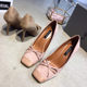 欧美范大牌简约时尚蝴蝶结浅口方头高跟鞋绒面撞色细跟单鞋少女鞋