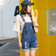 春夏季日系宽松减龄显瘦破洞背带牛仔短裤女卷边学院风吊带连体裤