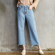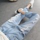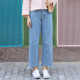 日系显瘦BF风学生宽松阔腿裤女牛仔裤哈伦微喇叭直筒毛边九分裤潮