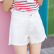 纯曼琳日系夏季新款显瘦紧身显瘦白色高腰牛仔短裤女卷边热裤子潮