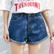 纯曼琳夏季新款日系怀旧显瘦提臀高腰牛仔短裤女A字卷边热裤子潮