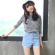 纯曼琳夏季日系修身显瘦宽松浅蓝色卷边高腰牛仔短裤女学生热裤潮