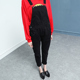 夏季日系BF风显瘦宽松黑色背带裤女小脚九分牛仔裤连体裤学院风潮