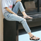 纯曼琳春秋季BF风日系显瘦9分破洞牛仔裤女宽松小脚九分裤哈伦裤