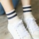 夏季薄款日系!素色两道杠松紧罗口女生短棉袜运动袜子B109