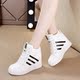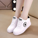 2017春季白色休闲鞋女鞋 坡跟隐形内增高单鞋高帮鞋 百搭旅游鞋