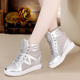 春季新款高帮鞋女鞋单鞋 隐形内增高白色休闲鞋 水钻坡跟旅游鞋