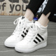 春季百搭高帮鞋 坡跟隐形内增高女鞋 拼色白色休闲鞋 高邦旅游鞋