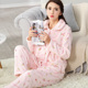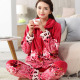 铭娜冬季加厚法兰绒女士睡衣年开衫珊瑚绒春季春秋季中老年家居服