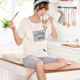 铭娜韩版新品春夏休闲睡衣女棉质短袖短裤卡通可爱休闲套装家居服