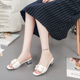 拖鞋女夏时尚外穿2017新款韩版粗跟一字拖露趾中跟皮带扣凉拖鞋女