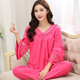 包邮金黛儿春秋本命年女士大红喜庆结婚纯棉睡衣全棉家居服套装