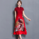 2017夏装新款复古定位印花真丝雪纺奥黛旗袍裙中式优雅短袖连衣裙