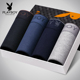 花花公子男士内裤平角裤纯棉中腰青年性感U凸全棉四角裤头礼盒装