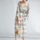 红人馆6262#欧美风V领交叉撞色格子雪纺连衣裙中长款裙子女春季