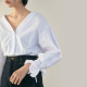 红人馆2096#欧美风V领长袖系带单排扣衬衫衬衣宽松上衣女春上新