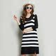 春夏季圆领新款五分袖针织衫女套头中长款修身显瘦条纹撞色连衣裙