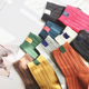 橘子郡 2016秋新款日系杂志款学院风糖果色拼色透气棉质中筒袜女