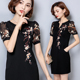 春夏装新款加肥大码女装民族风中长裙宽松胖MM七分袖绣花女连衣裙
