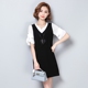 夏装新款加肥大码女装吊带连衣裙宽松显瘦胖mm条纹T恤两件套装裙