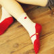 caramella秋季新品红舞鞋提花造型袜淑女小爱心鞋版袜甜美女袜子