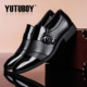 YUTUBOY春秋新款男士商务正装套脚皮鞋 真皮潮流金属扣漆皮男鞋子