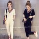 春夏季中袖连帽卫衣T恤上衣两件套+九分小脚哈伦裤大码运动套装女