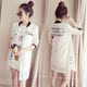 春夏女装韩版新款七分袖中长款印花薄外套沙滩披肩雪纺开衫防晒衣