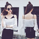 春夏新款荷叶边喇叭袖吊带露肩假两件雪纺衫细肩带露背甜美上衣女