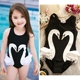 2017春夏新女童名媛高贵天鹅游泳衣儿童温泉服亲子母女泳装送泳帽