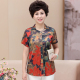 中老年人短袖绸缎面衬衫 中年女装夏装丝绸T恤妈妈装50-60岁上衣
