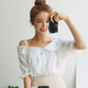 韩版夏季新款时尚一字领性感显瘦雪纺衬衫女 露肩荷叶边吊带衬衣