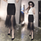 夏季韩国性感高腰黑色显瘦网纱蕾丝拼接半身长裙女不对称包臀裙